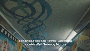 涂刷英国“百年电影”主题的地铁壁画