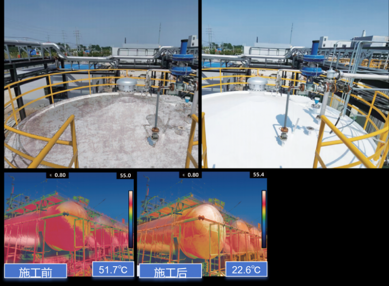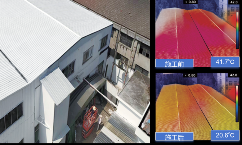 并且,区别于传统降温材料的多层施工模式,它可实现单涂层直接施工,无需额外叠加工序,大幅降低施工成本;同时突破“白色涂层”的局限,可适配多类基材,兼顾实用性与美观度,解决了传统降温材料“效果弱、施工繁”的行业痛点。
