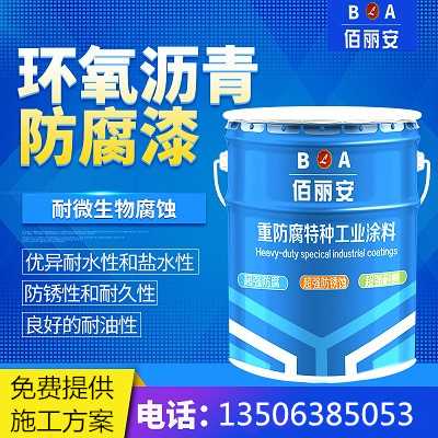 佰丽安环氧沥青漆环氧煤沥青漆厂家 管道污水池耐微生物耐水漆是由不同分子量的化合物及其非金属衍生物组成的黑褐色复杂混合物,是高粘度有机液体的一种,呈液态,表面呈黑色环氧沥青漆环氧煤沥青漆是由高分子聚合物改性剂均匀地分散到粒径连续相重新构成的体系,耐污水池、耐微生物、防腐性能强。
